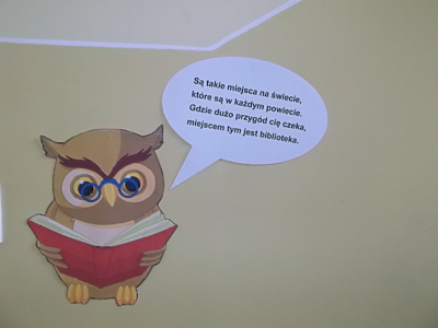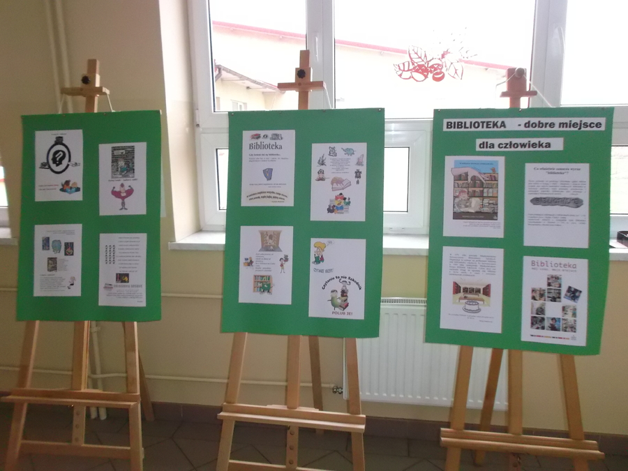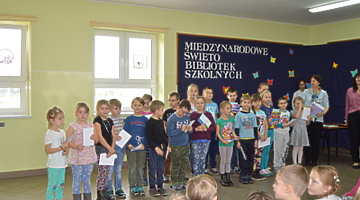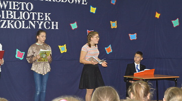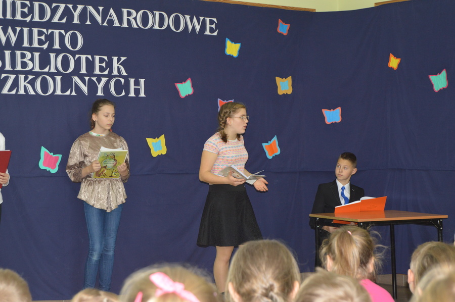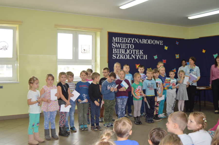 Już od rana widoczne były zmiany w naszej szkole. Uczniowie zwrócili uwagę na sowy, które „wypowiadały” krótkie wiersze o bibliotece, a umieszczone były na drodze prowadzącej do biblioteki. Tego dnia bibliotekę odwiedziły tłumy uczniów, a każdy wypożyczający otrzymywał słodki upominek. Gimnazjaliści czytali baśnie i bajki swoim młodszym kolegom z klas II-III szkoły podstawowej. Przeprowadzono również konkursy biblioteczne i tak: w klasach I-III szkoły podstawowej konkurs plastyczny pt. „Bohater mojej ulubionej książki” – prace konkursowe można było oglądać na szkolnym korytarzu, w klasach IV-VI „Konkurs 5 pytań” a w gimnazjum „Konkurs 10 pytań” – uczestnicy tych konkursów odpowiadali na pytania związane z biblioteką i książką. Ogłoszenie wyników konkursów oraz wręczenie nagród miało miejsce na apelu, w czasie którego dzieci obejrzały inscenizację wiersza Jana Brzechwy pt. „Kłamczucha” w wykonaniu uczniów z Koła Przyjaciół Biblioteki Natalii Pawlik, Zuzanny Gąszczak i Denisa Gatnera.