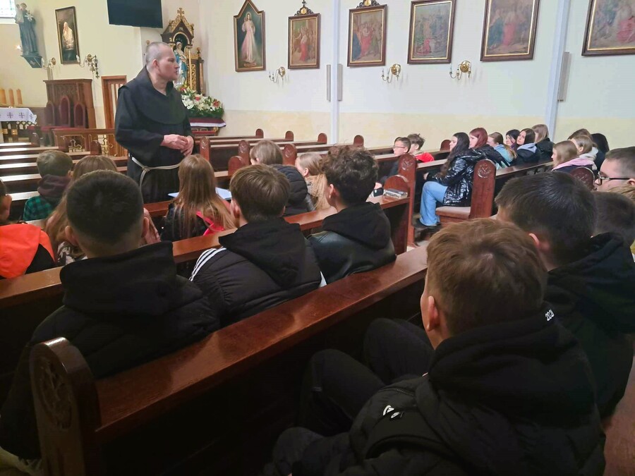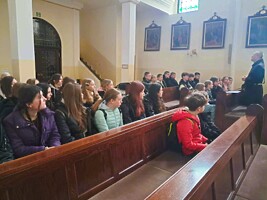 27 marca uczniowie klas V-VIII pojechali na wycieczkę do Prudnika, która zakładała odwiedzenie jednego z miejsc internowania Patrona naszej szkoły bł. Kard. Stefana Wyszyńskiego. Klasztor w Prudniku był trzecim w kolejności miejscem więzienia naszego Patrona i przebywał tutaj rok. Dziś w pięknie wyremontowanych klasztornych wnętrzach znajduje się cela, gdzie przetrzymywany był bł. Stefan Wyszyński, w której zachowany został surowy klimat tamtych lat, meble i skromne sprzęty, z których korzystał.