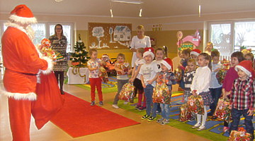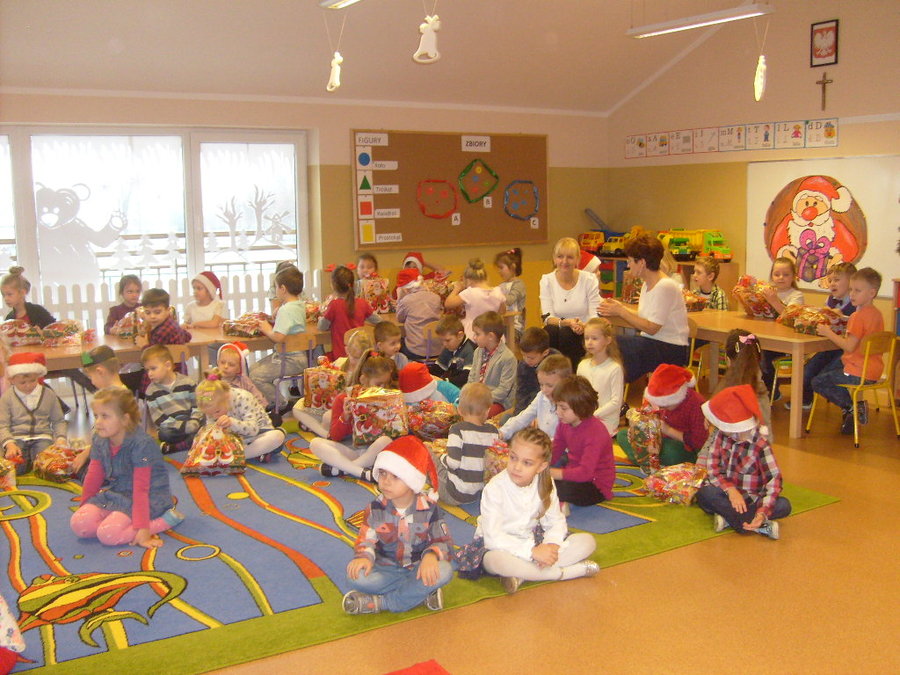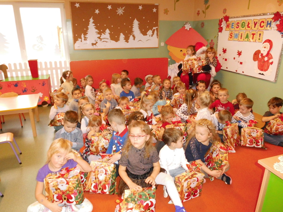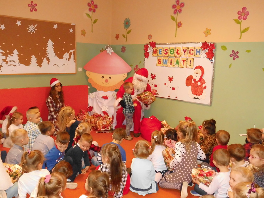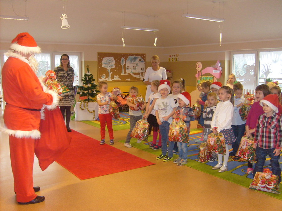 Dnia 6 grudnia 2016r. do Przedszkola przybył św. Mikołaj z dużym workiem prezentów dla dzieci. Przedszkolaki już od rana z wielką niecierpliwością czekały na spotkanie z niezwykłym gościem, przywitały Mikołaja wierszykami i piosenkami o tematyce świątecznej. Spotkanie z Mikołajem przebiegło w bardzo miłej atmosferze. Każde dziecko otrzymało paczkę, w której był upominek i dużo słodyczy. Wszyscy umówili się na spotkanie w przyszłym roku.