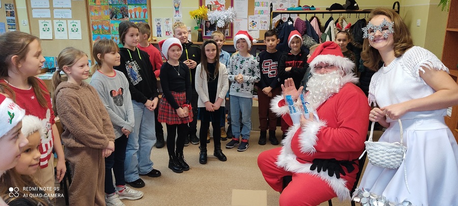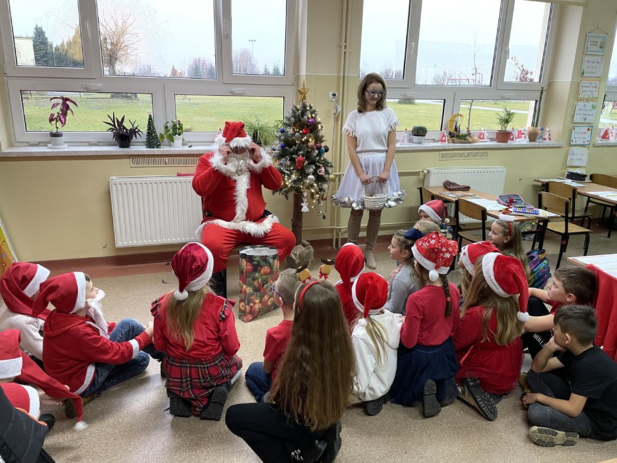 Jak co roku 6 grudnia 2022r. uczniów klas I-III odwiedził w szkole Mikołaj z workiem pełnym prezentów. Dzieci z niecierpliwością czekały na tę wizytę. Z tej okazji w klasach pojawiły się świąteczne dekoracje i choinki. Mikołaj wysłuchał przygotowanych dla niego piosenek i wierszyków. Rozmawiał z dziećmi, zachęcał do tego, aby były grzeczne, chętnie się uczyły, słuchały rodziców i pań w szkole. Na zakończenie wręczył wszystkim prezenty. Dzieci podziękowały za spotkanie i niespodzianki.