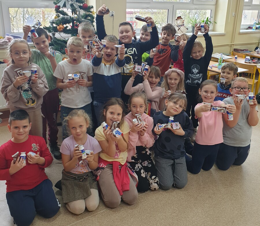 7 grudnia uczniowie klas I-III obdarowani zostali produktami firmy ZOTT Polska – producenta mlecznych smakołyków. Każdy uczeń otrzymał: mleczną kanapkę Monte, deser Monte oraz owocowy jogurt pitny. Tyle fantastycznych mlecznych dobroci wywołało uśmiech na każdej twarzy.