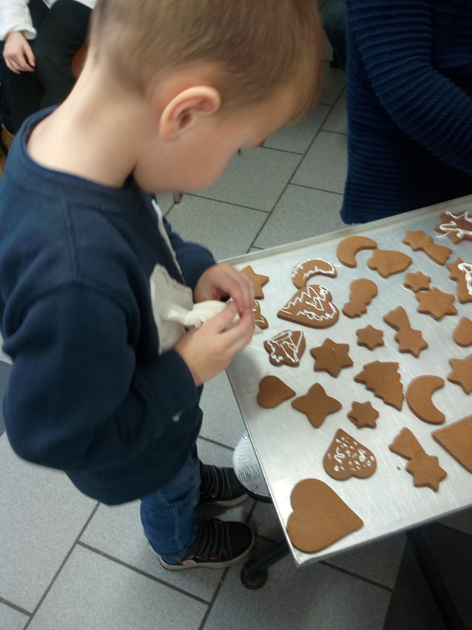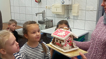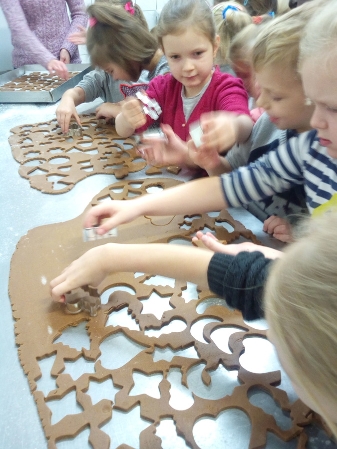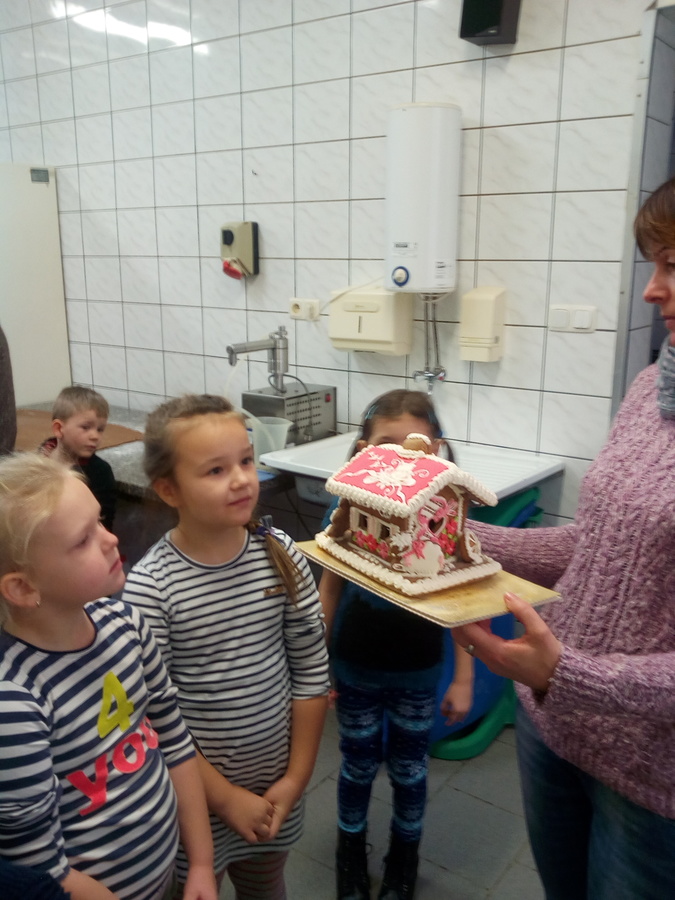 Dzięki życzliwości właścicieli dzieci mogły poznać specyfikę pracy, maszyny, narzędzia oraz pomieszczenia niezbędne do wypieków pysznych ciast i ciasteczek. Miłym zaskoczeniem było wspólne wykrawanie i ozdabianie pierników oraz poczęstunek zafundowany przez właścicieli.