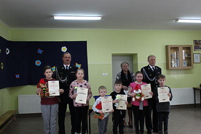 13 marca 2019r. wójt Gminy Trzcinica Grzegorz Hadzik, prezes Gminny OSP Krzysztof Waloszczyk i pracownik UG w Trzcinicy Donata Gawlik wręczyli nagrody i dyplomy laureatom tego konkursu, a wszystkim uczestnikom słodką niespodziankę.