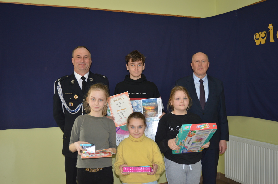 18 marca 2022r. wójt Gminy Trzcinica Grzegorz Hadzik i prezes Gminny OSP Krzysztof Waloszczyk wręczyli nagrody i dyplomy laureatom tego konkursu, a wszystkim uczestnikom słodką niespodziankę.