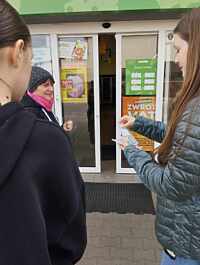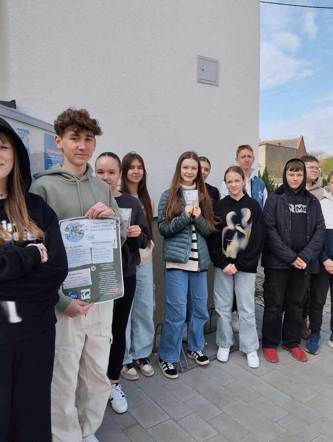 Wczorajsze obchody Dnia Ziemi kontynuowaliśmy również dziś. Uczniowie klasy VIIb wraz z panią Jolantą Jelonek zagościli dziś w Gminnej Bibliotece Publicznej, Gabinecie Weterynaryjnym VetMedic i Urzędzie Gminy w Trzcinicy z plakatami zachęcającymi do wzięcia udziału w naszych szkolnych zbiórkach ekologicznych. Plakaty pojawiły się również w niektórych witrynach sklepowych. Ten ekologiczny spacer pozwolił również na spotkanie z mieszkańcami Trzcinicy, króciutką rozmowę o tym, że każdy z nas ma wpływ na jakość powietrza i wręczenie tematycznych ulotek zachęcających do dbałości o środowisko i segregowanie odpadów.