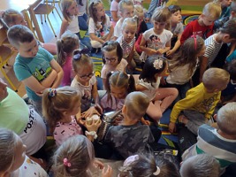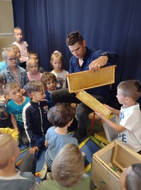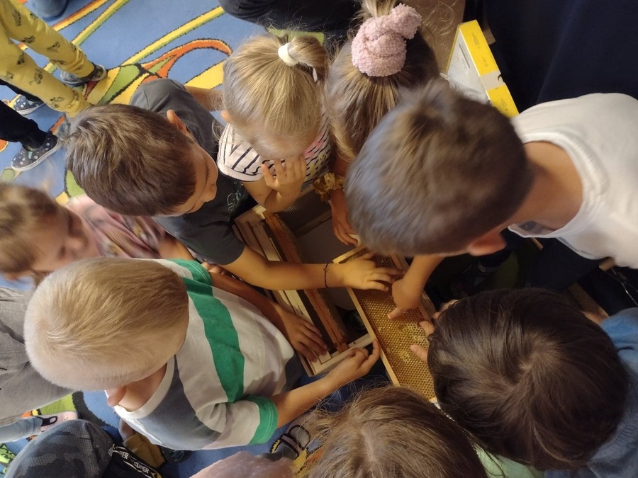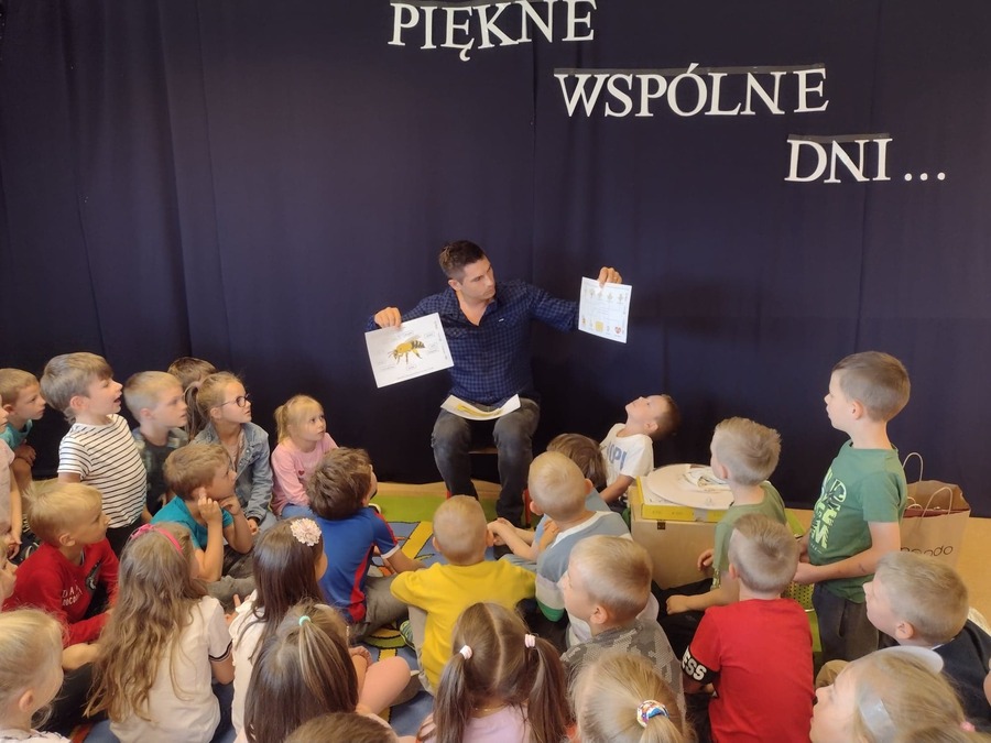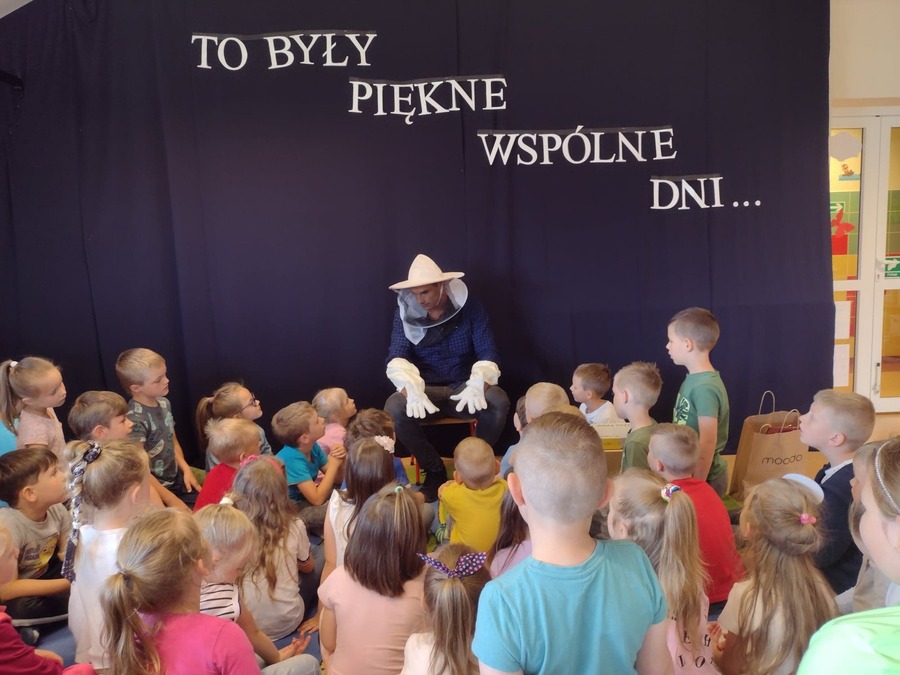 21 czerwca 2022r. przedszkolaków z grup „Smoki Dinusie” i „Muchomorki” odwiedził miły gość. Był to Tato Marcina z grupy „Smoki Dinusie” pan Zbigniew Wieloch, który jest pszczelarzem., Podczas spotkania dzieci dowiedziały się między innymi, że rój składa się z królowej, robotnic i trutni, w jaki sposób toczy się życie w ulu, jak i z czego powstaje miód. Przedszkolaki miały również okazję zobaczyć i przymierzyć strój pszczelarza oraz dowiedzieć się do czego służy miotełka pszczelarska i podkurzacz. Na koniec mogły skosztować miodu prosto z plastra – był pyszny!