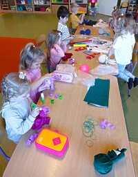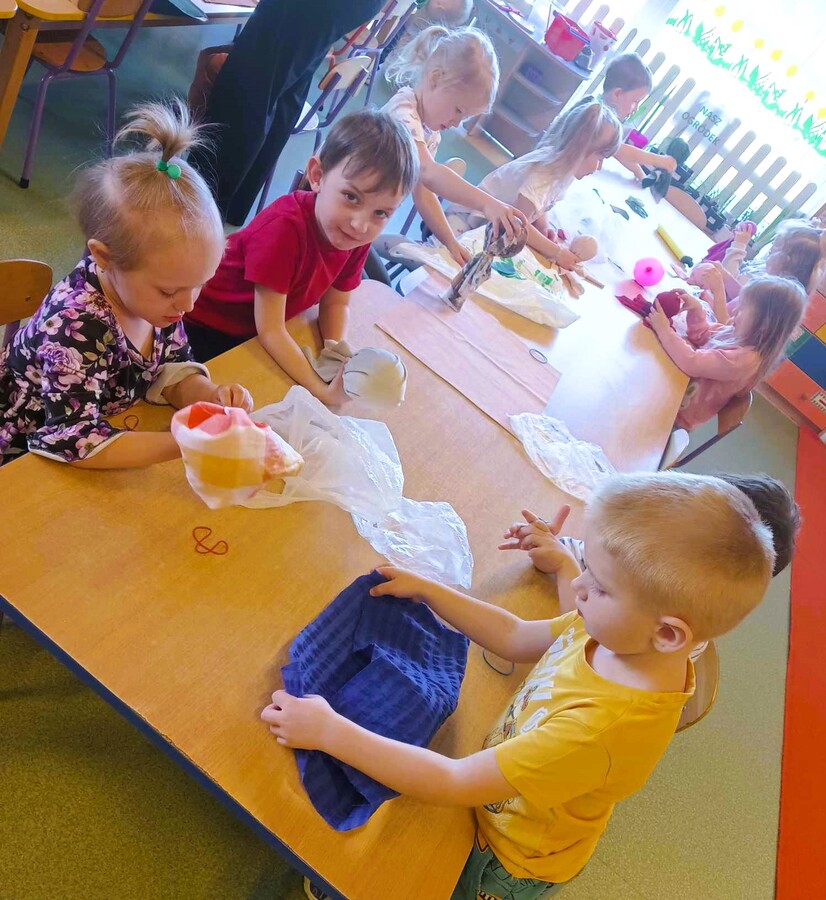 Podsumowaniem tego niezwykle ważnego tematycznie tygodnia było wspólne tworzenie kukiełek. Prawdziwe cudeńka powstały z niepotrzebnych w domu rzeczy, które dzieci przyniosły do przedszkola. Z pomocą nauczyciela Krasnoludki wykonały swoje zabawki/ kukiełki, ucząc się tym samym, że nie wszystko trzeba kupić i nie wszystko należy wyrzucać. Wiele materiałów można zużyć ponownie tworząc ciekawe projekty. W ten sposób najmłodsza grupa przedszkolna poznała na czym polega recykling.