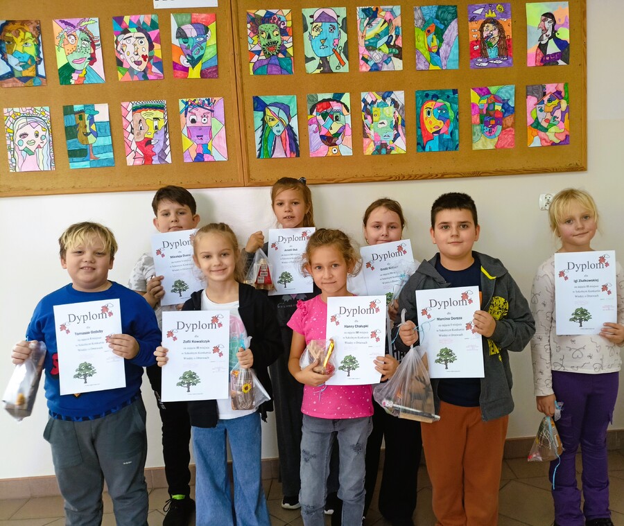 W konkursie dotyczącym ciekawostek o drzewach wzięli udział uczniowie klas IV-VIII.