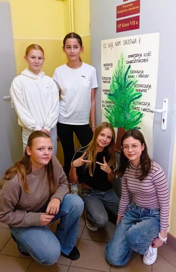 W ramach projektu uczniowie kl. I-VIII przygotowali na drzwiach do swoich klas ekologiczne plakaty tematyczne pod hasłem „Drzewo źródłem życia”.