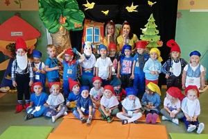 Motywem przewodnim organizowanych tego dnia zabaw były bajki: dzieci z grupy „Krasnoludki” oglądały teatrzyk pt. „Królewna Śnieżka i siedmiu krasnoludków”, dzieci z grupy „Jeżyki” wysłuchały bajki pt. „Jeżyk Wojtuś”, dzieci z grupy „Muchomorki” wysłuchały bajki pt. „Żwirek i Muchomorek”, a dzieci z grupy „Smoki Dinusie” spotkały się ze smokiem Tabalugą. Wystrój sal nawiązywał do scenerii danej bajki. Dzieci ubrane w charakterystyczne dla danej grupy stroje, przygotowane przez nauczycielki, pomoce i rodziców, bawiły się przez cały dzień i bajkowym korowodem przeszły wokół przedszkola i szkoły.