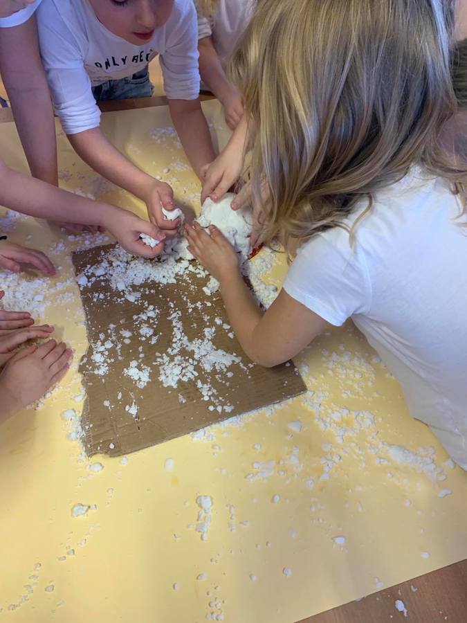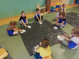 Dzieci z Przedszkola w Trzcinicy nigdy się nie nudzą. Korzystając z aury jaka panuje za oknami zdobyły sprawność „Antynudka”. Bawiły się świetnie białym puszystym śniegiem. Rzucały się śnieżkami, lepiły bałwany i nie tylko. Zabawy śnieżne przeniosły również do sal przedszkolnych, gdzie wykonały sztuczny śnieg, który pozostał z nimi na dłużej. Zabawy ze śniegiem nie miały końca w przedszkolu, przeniosły się również do domów naszych przedszkolaków. Czas spędzony na lepieniu z prawdziwego oraz sztucznego śniegu okazał się bardzo twórczą i kreatywną zabawą, która sprawiła wiele radości i nie pozwoliła na nudę.