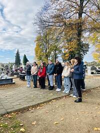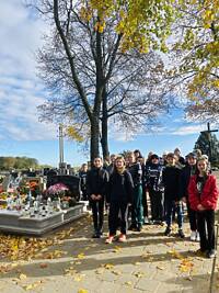 7 listopada klasa Va uczestniczyła w spacerze na cmentarz, podczas którego dzieci poznawały tradycje i zwyczaje związane ze Świętem Zmarłych w naszej kulturze i religii. Był to czas zadumy i refleksji. Uczniowie zwracali uwagę na ciekawe epitafia i analizowali ich przekaz. Mogli też zapalić znicze na grobach swoich bliskich. Wszyscy pomodlili się za dusze zmarłych.