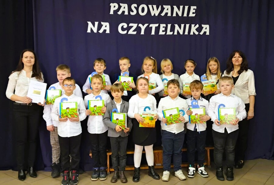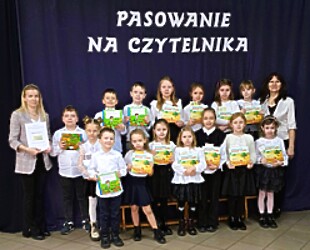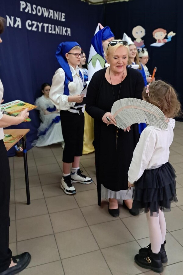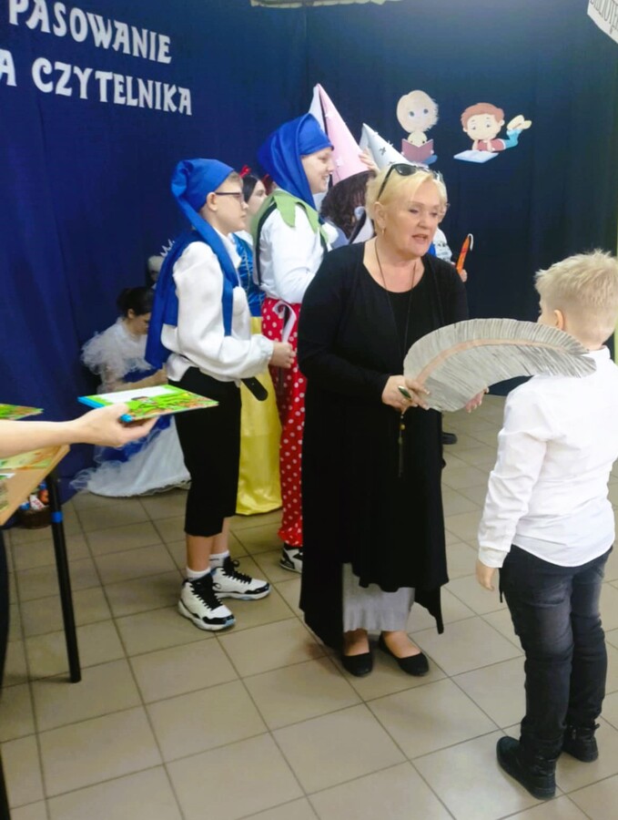 Pasowanie na aktywnego czytelnika szkolnej biblioteki przeprowadziła wicedyrektor szkoły pani Renata Adamska-Garbowska.
