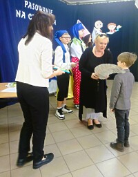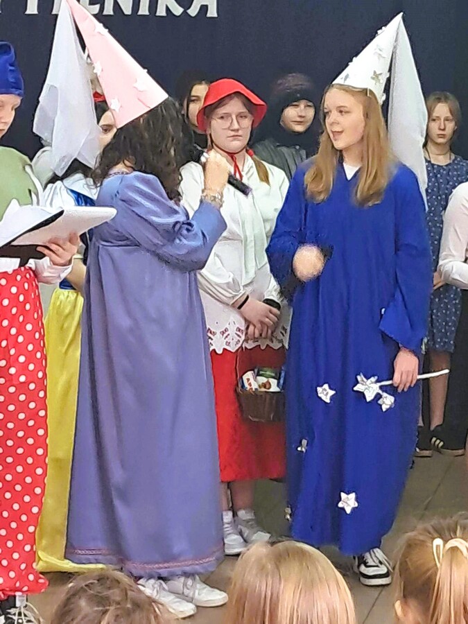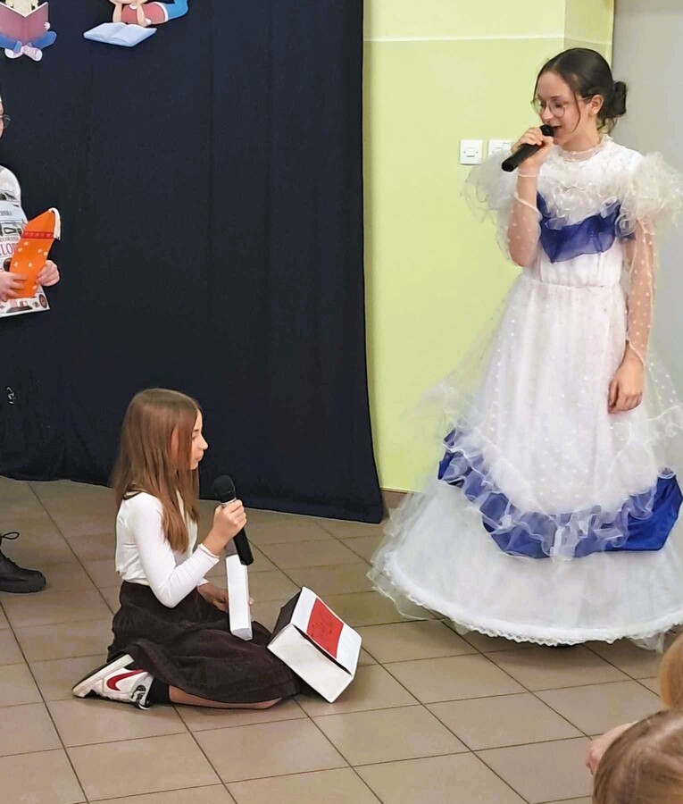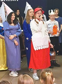 Pierwszoklasiści bezbłędnie odgadywali kolejnych bajkowych bohaterów, w których wcielili się ich starsi koledzy i koleżanki. Poradzili sobie również z książkowymi zagadkami i perfekcyjnie zdali egzamin z tego jak należy szanować książki.