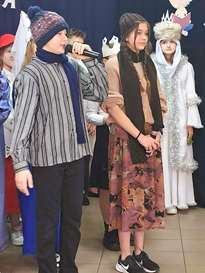 Przed samym pasowaniem czekało na najmłodszych naszych uczniów wiele atrakcji. Podczas pięknie przygotowanej części artystycznej odwiedziły ich bowiem bajkowe postacie: Jaś i Małgosia, Krasnoludki, Dziewczynka z zapałkami, Królowa Śniegu z Gerdą i Kajem, Królewna Śnieżka, Czerwony Kapturek oraz spierające się z sobą Wróżki.