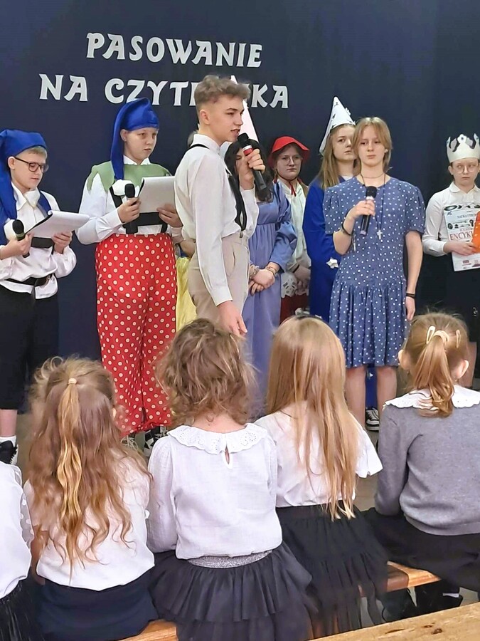 28 lutego w naszej szkole odbyła się Uroczystość Pasowania na Aktywnego Czytelnika Szkolnej Biblioteki uczniów klas pierwszych. O wadze tego wydarzenia świadczyło już to, że pierwszoklasiści przybyli na nie w strojach galowych.