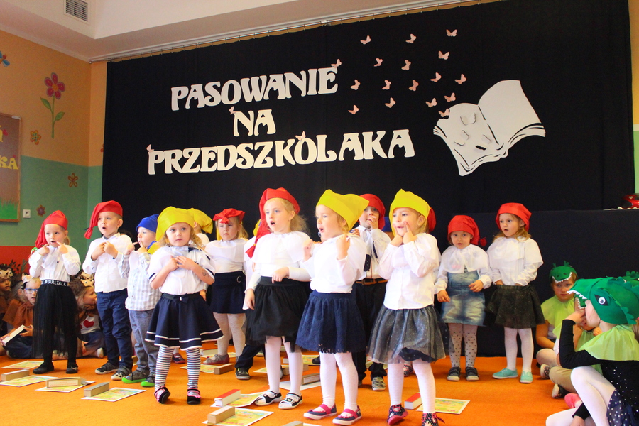 Nie ugiąć się „pod ciężarem ogromnej kredki”, którą pani wicedyrektor pasowała dzieci, wypowiadając przy tym słowa „Na przedszkolaka Cię pasuję! Życzę powodzenia, szczerze gratuluję!” i wręczając dyplomy pasowania.