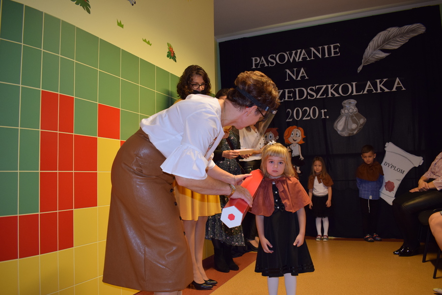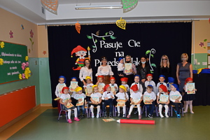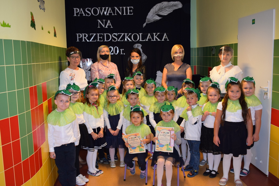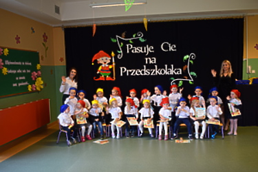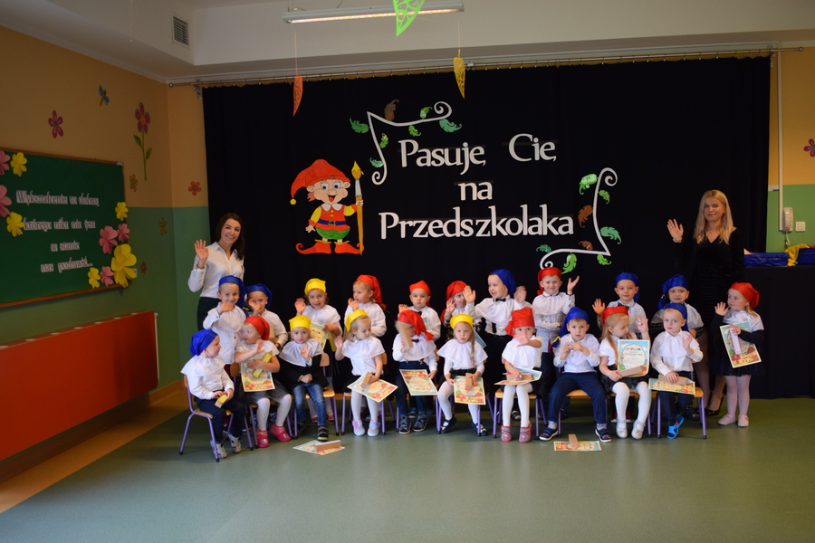 „Krasnoludki”, najliczniejsza gromadka przedszkolaków, ceremonię pasowania świętowały w swojej przedszkolnej sali. Dzieci zaprezentowały zdobyte umiejętności, które winien posiadać prawdziwy przedszkolak. Zrobiły to w obecności przedstawicielek Rady Rodziców i swoich pań. Dzieci z pozostałych grup („Jeżyki”, „Muchomorki”, „Smoki Dinusie”) pasowane były na piętrze. Podczas uroczystości otrzymały pamiątkowe dyplomy, upominki oraz stroje grupowe, które przypominają o tym do jakiej grupy dziecko należy. Mamy z Rady Rodziców przygotowały z okazji pasowania słodką niespodziankę.