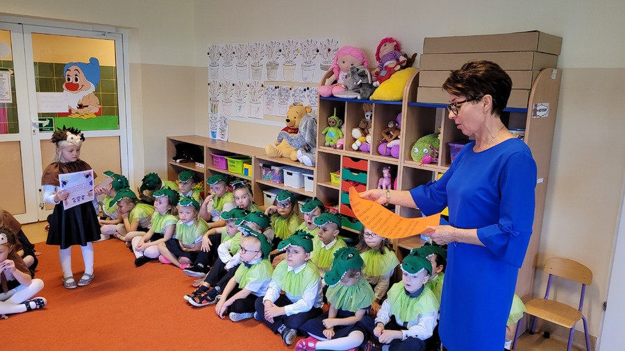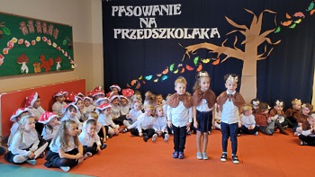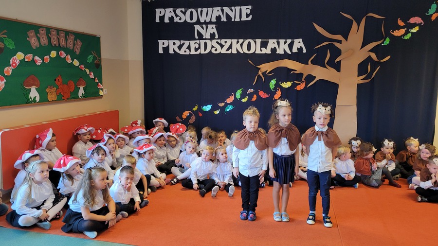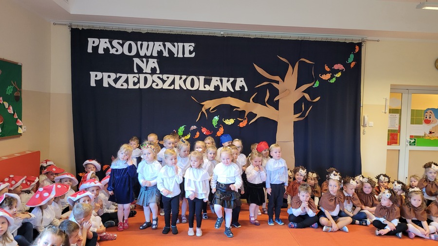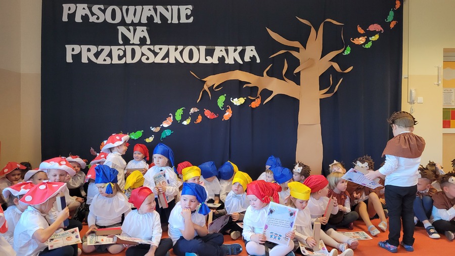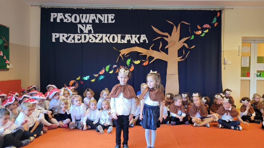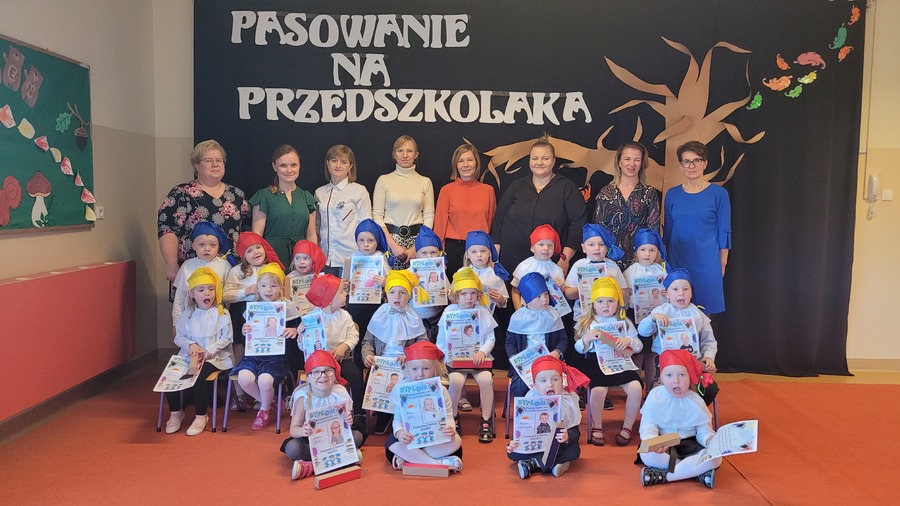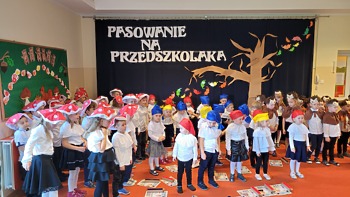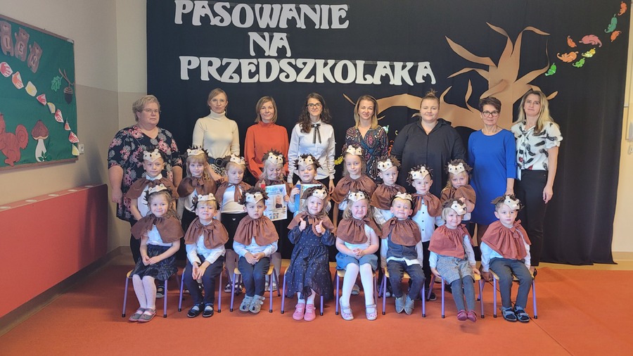 28 października 2022r. w naszym przedszkolu odbyło się „Pasowanie na Przedszkolaka” – uroczystość bardzo ważna dla dzieci, które po raz pierwszy w tym roku szkolnym zawitały do naszego przedszkola. Pani Kierownik Mariola Bednarek powitała zaproszonych gości, a następnie dzieci przedstawiły krótką część artystyczną, podczas której zaprezentowały swoje umiejętności i tym samym udowodniły jak dużo już potrafią. Były wierszyki, piosenki i tańce. Wicedyrektor Zespołu Szkół Ewa Hetmańczyk dokonała uroczystego pasowania każdego dziecka na przedszkolaka. Podczas ślubowania dzieci przyrzekły: zgodnie bawić się w przedszkolu, przychodzić każdego dnia z uśmiechem, słuchać pani i pomagać kolegom, być dzielnym przedszkolakiem.
