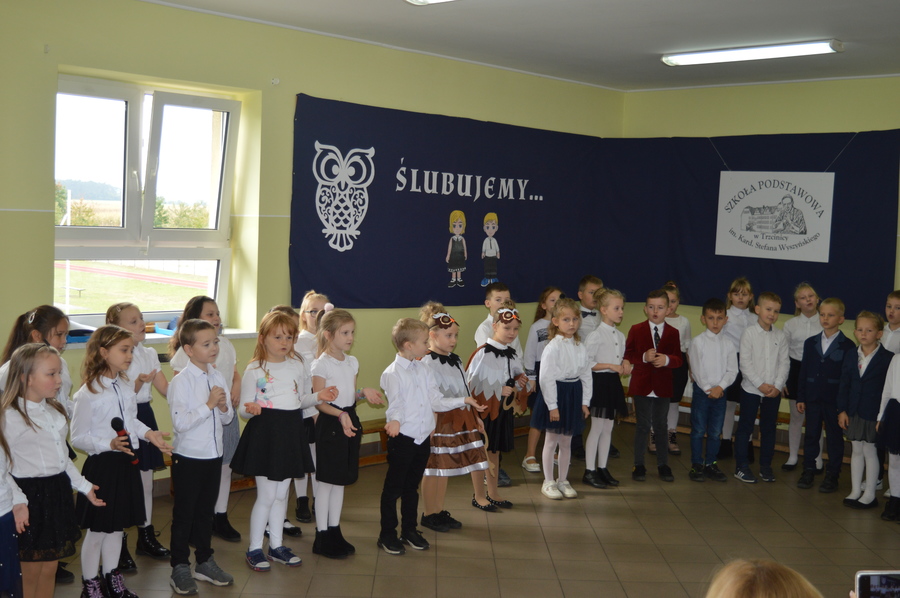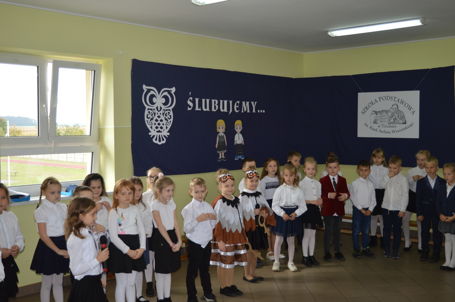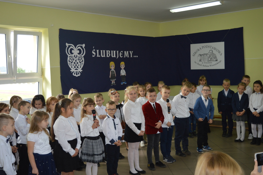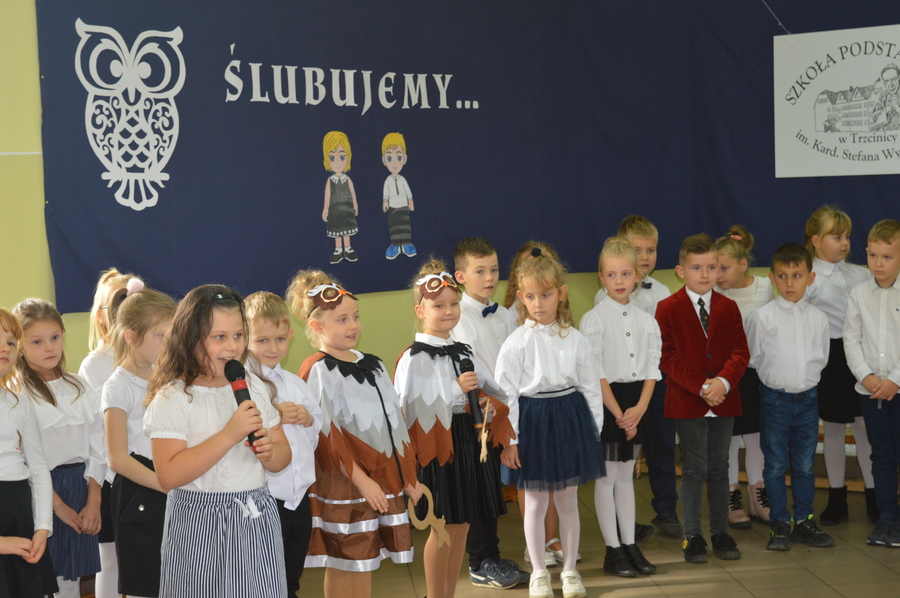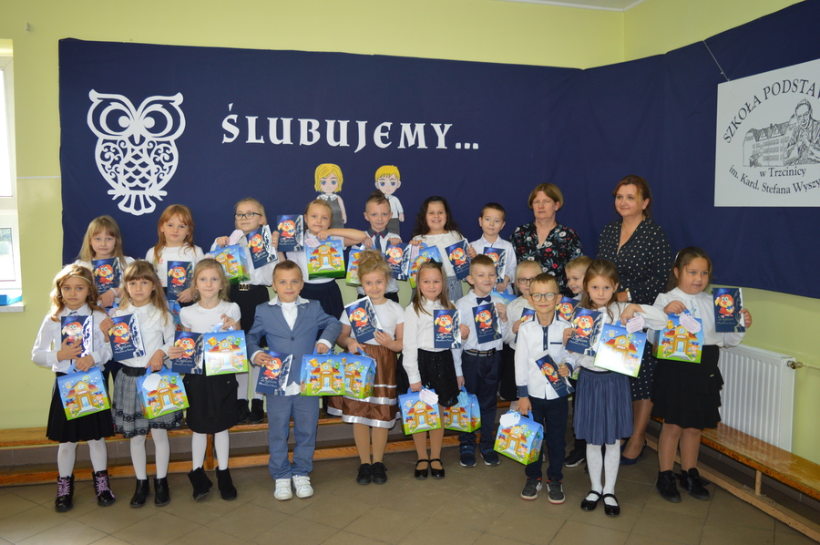 14.10.2021r. w Szkole Podstawowej im. Kard. Stefana Wyszyńskiego w Trzcinicy odbyło się „Pasowanie pierwszoklasistów na uczniów”. W uroczystości udział wzięli: dyrektor Zespołu Szkół w Trzcinicy Małgorzata Hadzik, wicedyrektor Zespołu Szkół w Trzcinicy Ewa Hetmańczyk, przewodnicząca Rady Rodziców Karolina Ozdoba, wychowawczynie klas I i rodzice pierwszoklasistów.