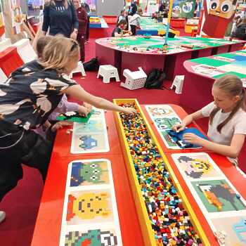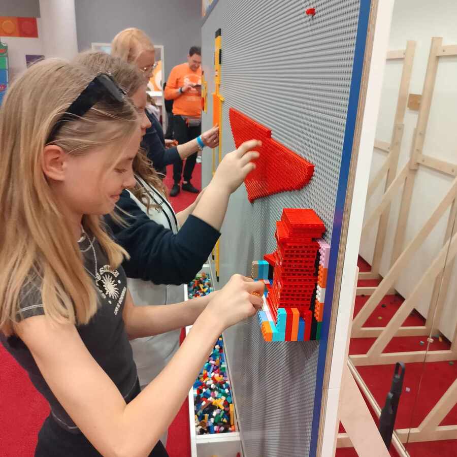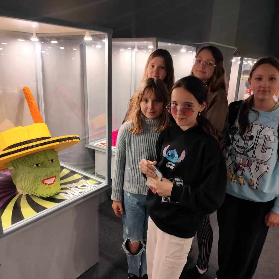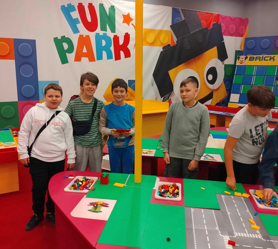 Następnie uczniowie udali się na wystawę klocków Lego do budynku SkyTower. Podziwiali największy model zbudowany z 1,2 mln klocków statek kosmiczny Star Wars, modele budowli: Luwru, Wielkiego Chińskiego Muru, Krzywej Wieży w Pizie, makiety inspirowane różnymi bajkami np. Świnką Peppą, Psim Patrolem, bajkami Disneya i wiele, wiele innych.. Sami uczniowie mieli czas i miejsce, by wykonać własne budowle i kompozycje w sali Fun Parku.