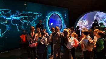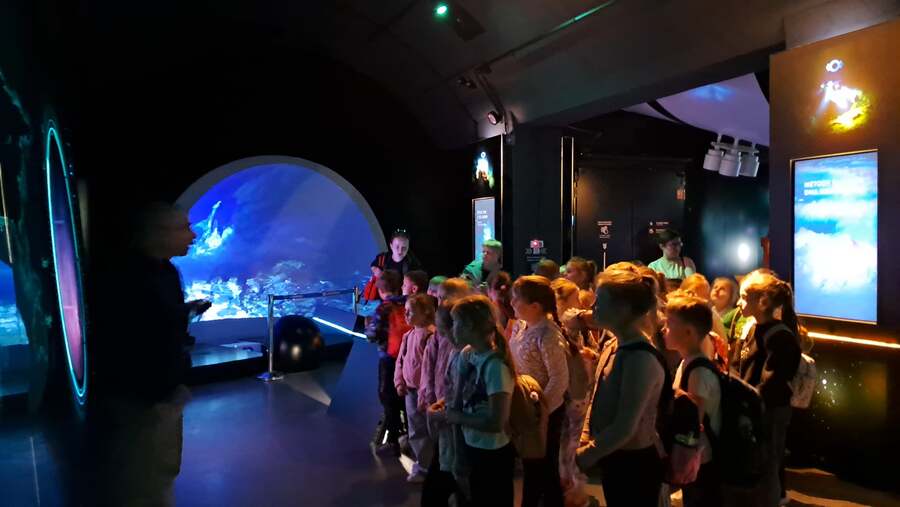 Następnie pod opieką przewodnika zwiedziliśmy wystawę Hydropolis - centrum wiedzy o wodzie. Odkryte zostało miejsce, w którym multimedia, interaktywne instalacje i technologie ukazują potencjał wody tkwiący w miastach, głębinach, atmosferze, a także w ludzkim ciele.