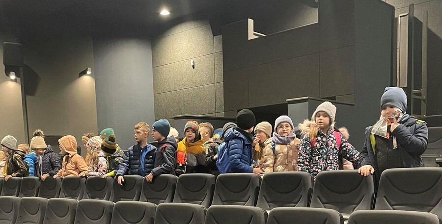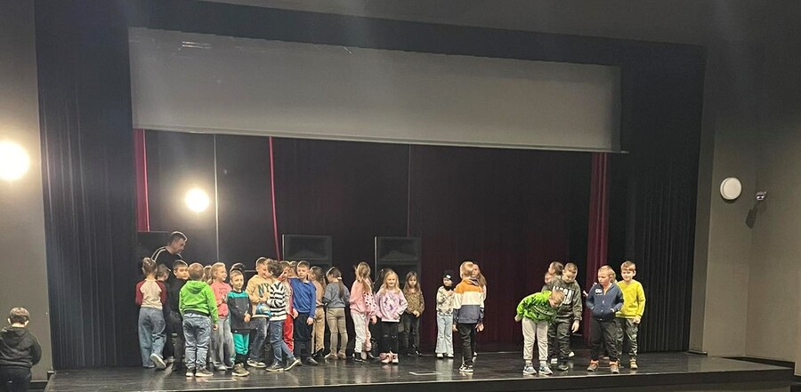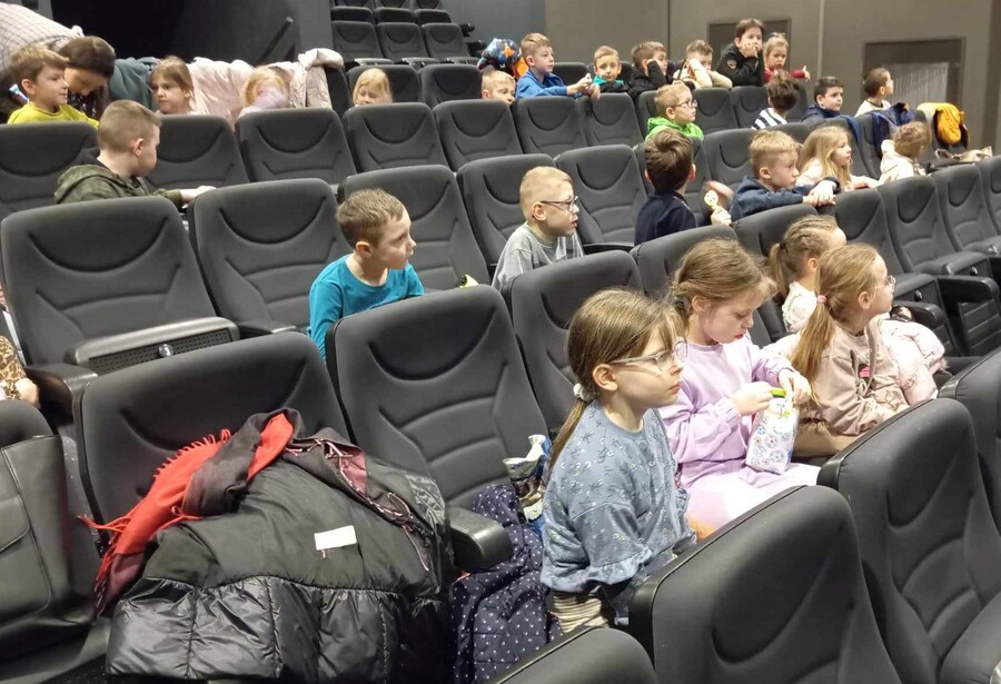 Uczniów przywitał Pan Grzegorz Leks, który opiekuje się kępińskim kiniem. Jego usposobienie i otwarcie sprawiło, że pierwszoklasiści szybko rozgościli się na widowni.
