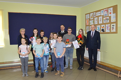 27 lutego 2018r. w Zespole Szkół w Trzcinicy nastąpiło podsumowanie etapu gminnego ogólnopolskiego konkursu plastycznego „Zapobiegajmy pożarom”. Wręczenia nagród i dyplomów laureatom konkursu dokonali: wójt Gminy Trzcinica Grzegorz Hadzik, Prezes Gminny OSP Krzysztof Waloszczyk i Donata Gawlik pracownik UG w Trzcinicy.