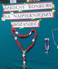 W pażdzierniku, tradycyjnie już odbył się konkurs plastyczny na "najpiękniejszy" różaniec. Uczniowie wręcz prześcigali się w pomysłach i tak powstały różańce z muszelek, nakrętek plastikowych, cukierków, serduszek, koralików, darów jesieni i wielu innych surowców. Wszystkie prace przez wiele dni zdobiły dolny korytarz na pokonkursowej wystawie. 26 października konkurs został podsumowany. Komisja konkursowa nagrodziła wszystkich uczestników, a było ich aż 78. Dyrektor Szkoły - pani Ewa Hetmańczyk podziękowała uczniom za tak liczy udział w konkursie i wręczyła wszystkim pamiątkowe dyplomy.