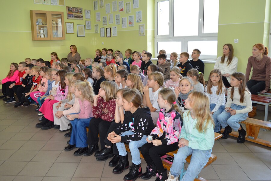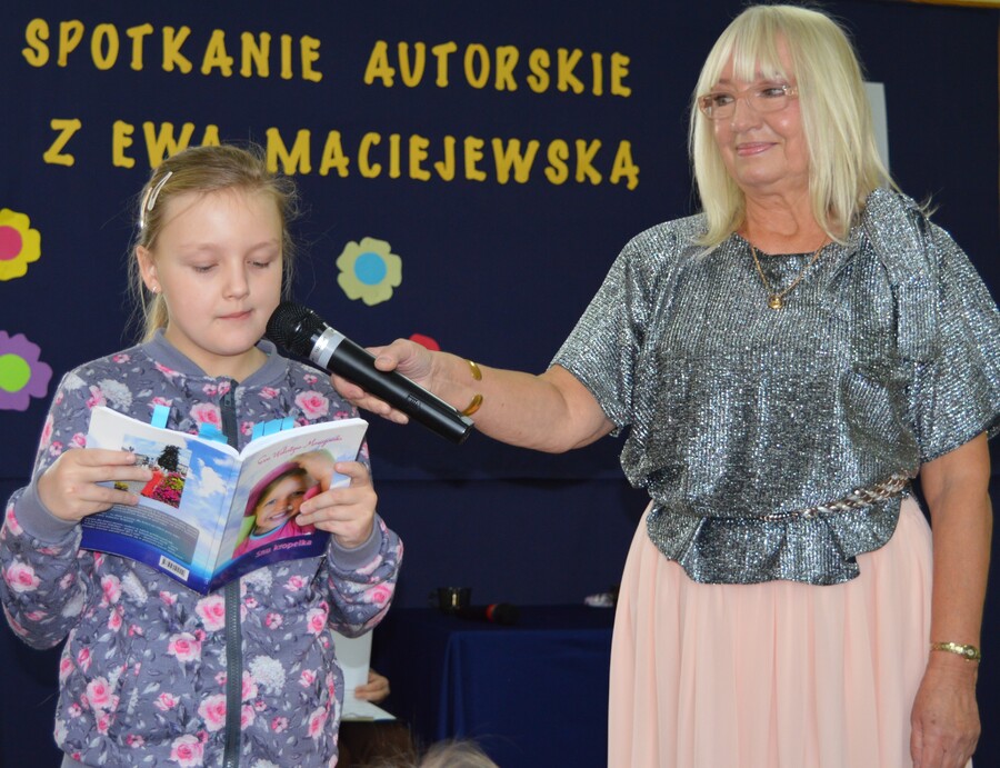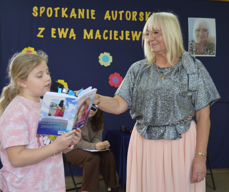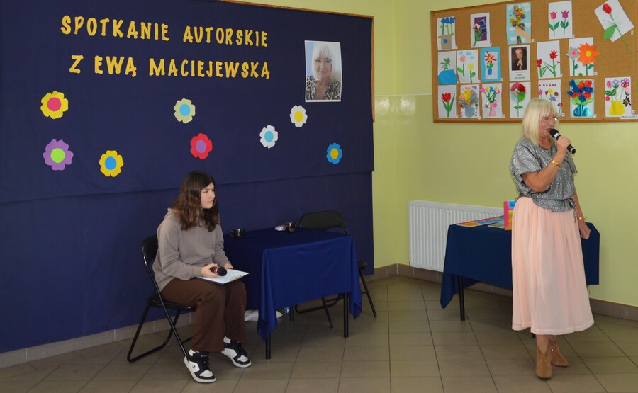 Pani Ewa z ogromnym zaangażowaniem opowiadała o swoich pasjach – pisaniu i malowaniu. Przybliżyła uczniom elementy procesu twórczego i przedstawiła kilka swoich utworów poetyckich. Ponieważ poetka pisze również teksty dedykowane dzieciom, publiczność była dość mocno zainteresowana wydarzeniem. Uczniowie oprócz zadawania pytań autorce chętnie czytali także jej wybrane wiersze.