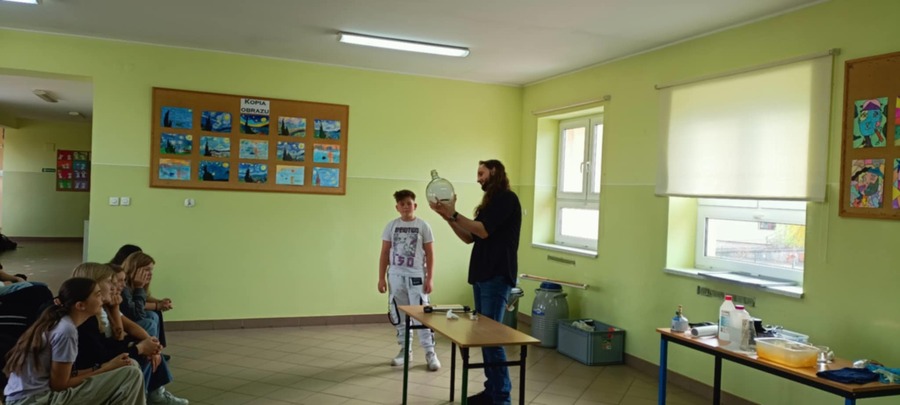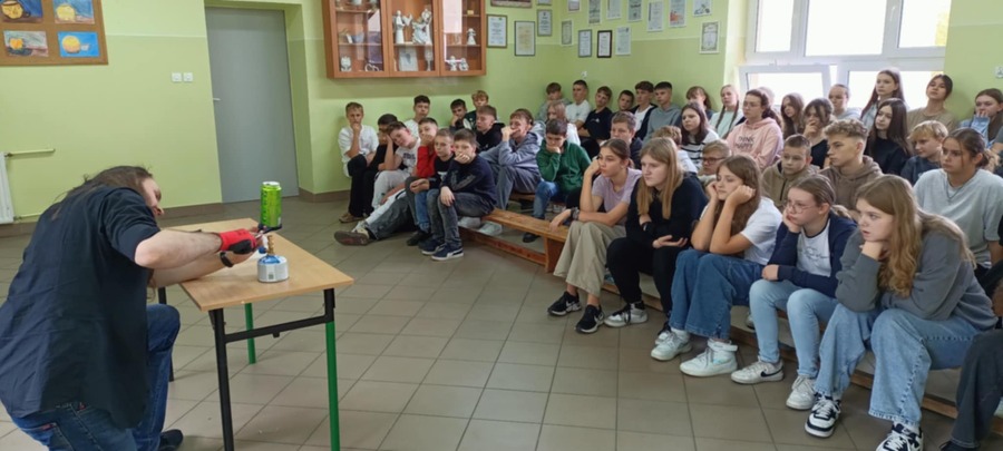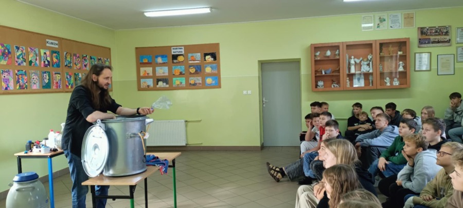 30 października w naszej szkole po raz kolejny odbył się pokaz doświadczeń przyrodniczych, które poprowadził nauczyciel przyrody i geografii oraz pasjonat chemii i fizyki – Mateusz Łucki z EduEvent.