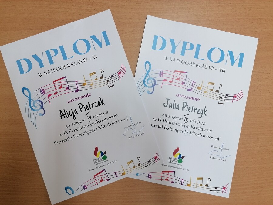 23 października 2022r. w auli Centrum Kształcenia Ustawicznego w Kępnie odbył się IX Powiatowy Konkurs Piosenki Dziecięcej i Młodzieżowej. Organizatorem festiwalu było Starostwo Powiatowe w Kępnie. Naszą szkołę reprezentowały dwie uczennice w następujących kategoriach: Alicja Pietrzak w kategorii klasy IV-VI i Julia Pietrzyk w kategorii klasy VII-VIII.