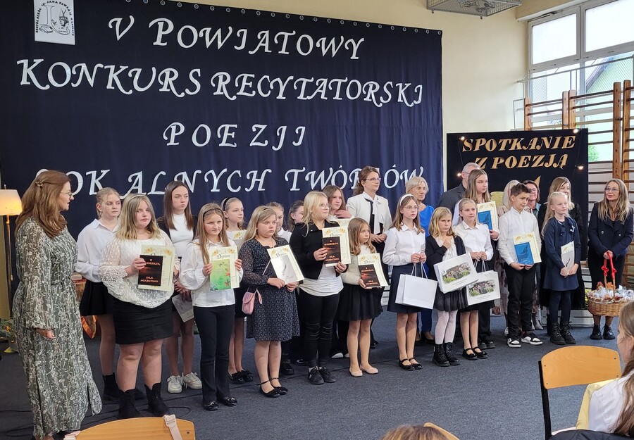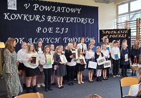 Naszą szkołę reprezentowały: Julia Fiołka, uczennica klasy Va, którą przygotowała pani Beata Więcek-Szczurowska oraz Bianka Bielińska, uczennica klasy VIIa przygotowana przez panią Lidię Jerczyńską. Obie dziewczynki pięknie się zaprezentowały i obu serdecznie gratulujemy.