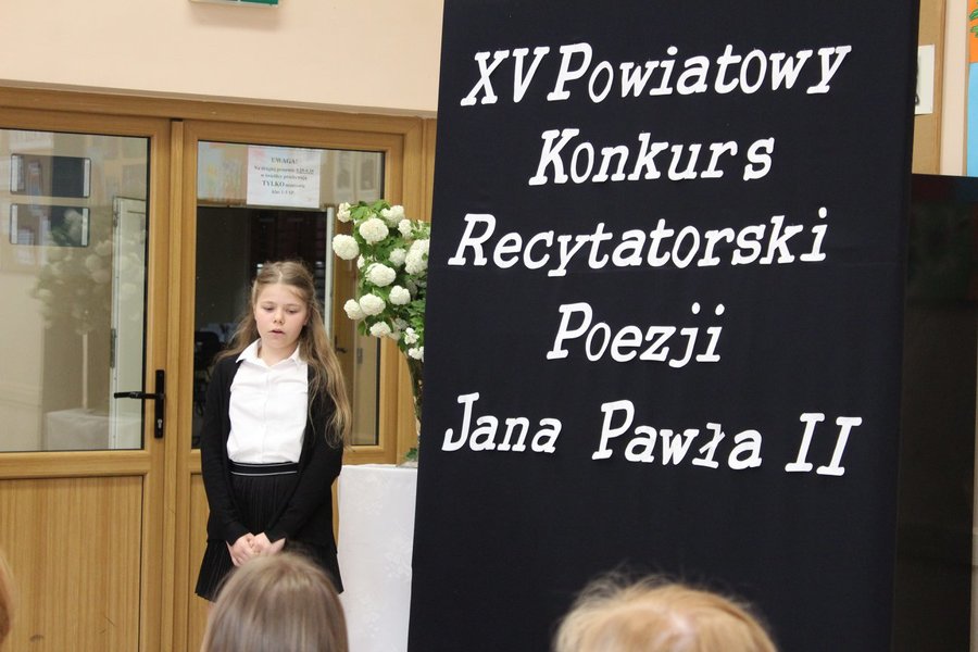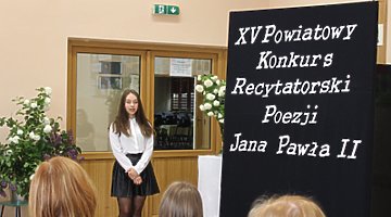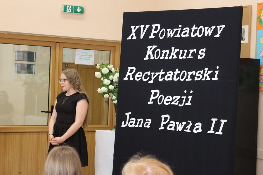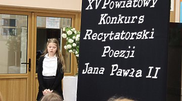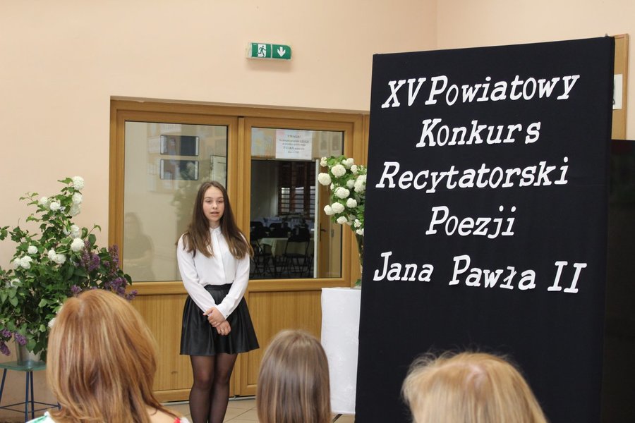 11 maja w 2018r. uczennice Zespołu Szkół w Trzcinicy wzięły udział w Powiatowym Konkursie Recytatorskim im. Jana Pawła II, który już po raz piętnasty odbywał się w Zespole Szkół im. Jana Pawła II w Laskach. Recytowały dwa utwory – jeden autorstwa Jana Pawła II, drugi patriotyczny dowolnego poety polskiego.