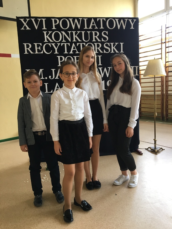 Szkołę podstawową reprezentowali: Nikola Nowak z kl. Va, Łukasz Papiór z kl. Vb i Maja Tomalik z kl. VII, gimnazjum reprezentowała Natalia Parzonka z kl. IIIb.