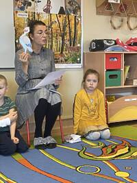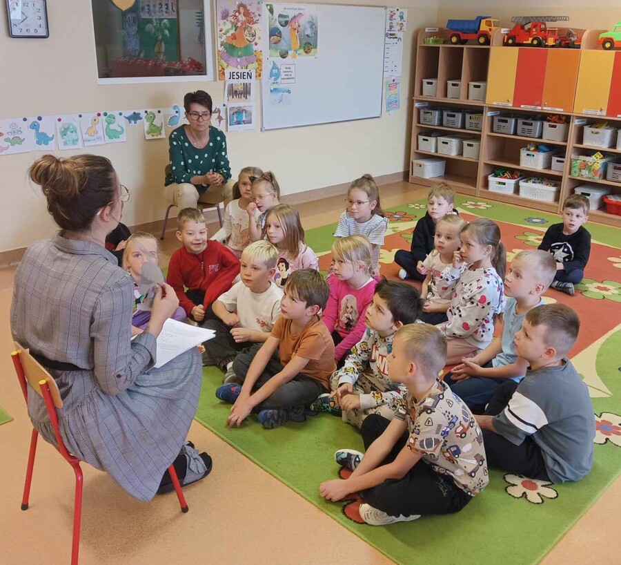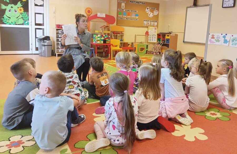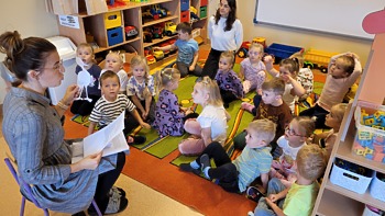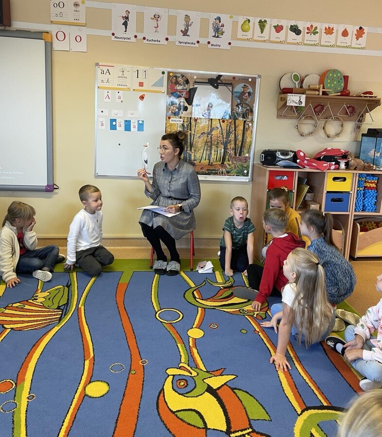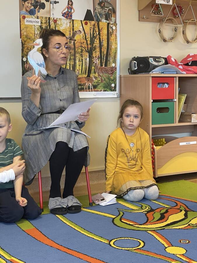 Dzieci wysłuchały już listu od bociana Teodora, który marzy o tym aby zostać profesorem nauk przedszkolnych i przygotował dla przedszkolaków siedem zadań do wykonania: sprawność pomocnej dłoni oraz sprawności ratownika medycznego, małego chemika, detektywa, majsterkowicza, znawcy własnej miejscowości, podróżnika.