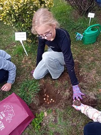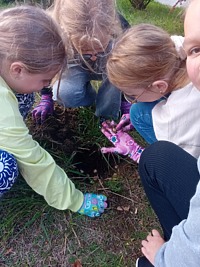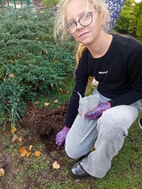 - 09.10.2024 r. w ramach zajęć Koła ekologicznego uczniowie sadzili rośliny na terenie szkoły. Były to różne gatunki kwiatów, które wiosną będą pięknie zdobić teren wokół szkoły. Członkowie koła zajmowali się również przycinaniem krzewów oraz pielęgnacją zieleni wokół drzew na terenie szkoły.