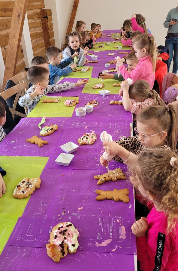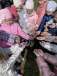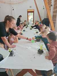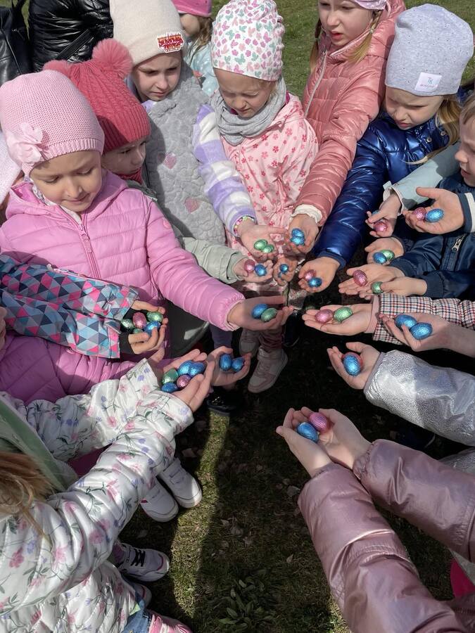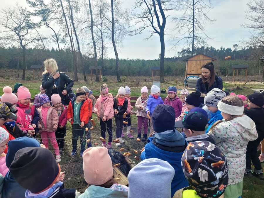W tym roku dzieci z przedszkola w poszukiwaniu Wielkanocnego Zajączka wyruszyły na wycieczkę do Przygodziczek. 27 marca, dwa autobusy pełne roześmianych przedszkolaków wyjechały więc na spotkanie z wielkanocną przygodą. Na miejscu w Przygodziczkach czekały na dzieci przygotowane przez Folwark Jeździecki „Jurant” wspaniałe „Zajączkowe warsztay”. Pierwszą atrakcją był warsztat tematyczny „MAZUREK”, w którym dzieci lukrowały i przyozdabiały wielkanocne mazurki. Następnie dzieci wsadzały do słoiczków szafirki wykonując ozdobę wielkanocną. Po tak wyczerpującej pracy przedszkolaki zajadały się pieczonymi przy ognisku kiełbaskami, które znikały w oka mgnieniu. Na koniec odbyło się wspólne szukanie jajeczek i powrót do przedszkola.