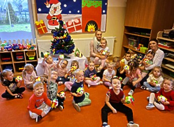 W okresie przedświątecznym przedszkolaki pracują nad przygotowaniem przeróżnych ozdób, które wykorzystują do upiększania swoich sal oraz domów.