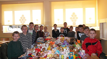 Tradycyjnie przeprowadzili przedświąteczną zbiórkę słodyczy, maskotek i odzieży w ramach akcji „Dzieci dzieciom”. Zebrane dary serca zostały 10 kwietnia 2017r. wysłane do Domu Dziecka w Kosewie, z którym szkoła współpracuje od wielu lat. Pomysłodawcą i koordynatorem akcji była Renata Adamska – nauczycielka religii w szkole podstawowej. W zbiórkę „darów serca” zaangażowali się zarówno uczniowie, rodzice, jak i nauczyciele.