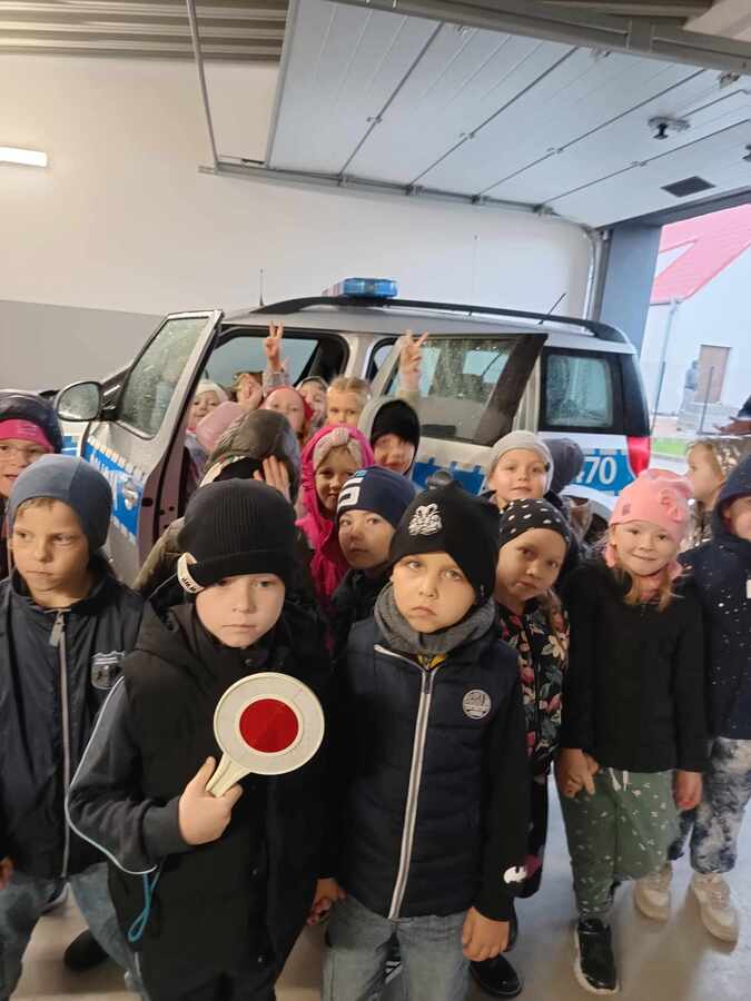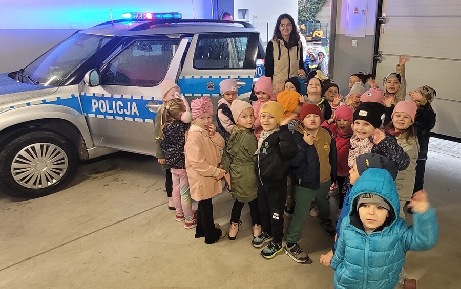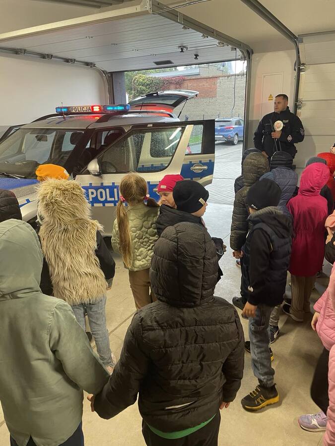 W policyjnym garażu dzieci z fascynacją oglądały radiowóz.