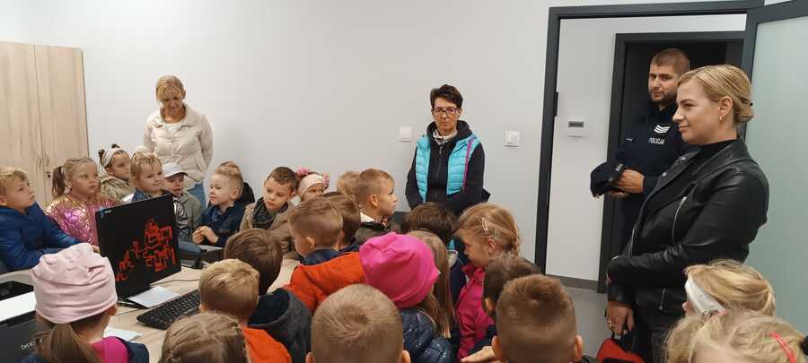 Dzieci zwiedziły świetlicę, gdzie odbywają się szkolenia i odprawy, pokoje dzielnicowych, a także pokój policjantów ogniwa patrolowo-interwencyjnych.