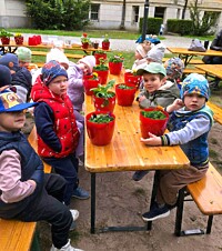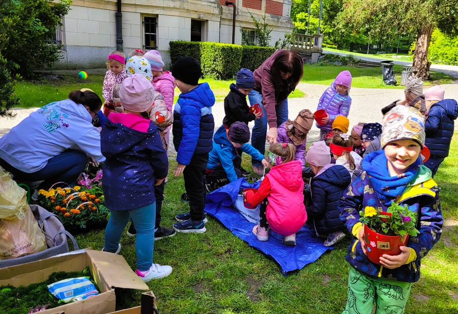 Warsztaty pod hasłem „Tropiciele wiosny” miały charakter przyrodniczy. Przedszkolaki własnoręcznie udekorowały doniczki i sadziły kwiaty. Dowiedziały się, jak dbać o rośliny i jak ważną rolę pełnią one w przyrodzie. Spacerowały ścieżką ekologiczną i wszystkimi zmysłami poznały otaczającą przyrodę.