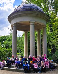 Podczas wycieczki dzieci poznały historię odwiedzanego miejsca oraz jego okolic. Wyjątkowy teren i sprzyjająca pogoda pozwoliły na zabawy na świeżym powietrzu w przypałacowym parku, gdzie dzieci poszukiwały kolorowych jajeczek, tropiły zwierzęta oraz szukały oznak wiosny.