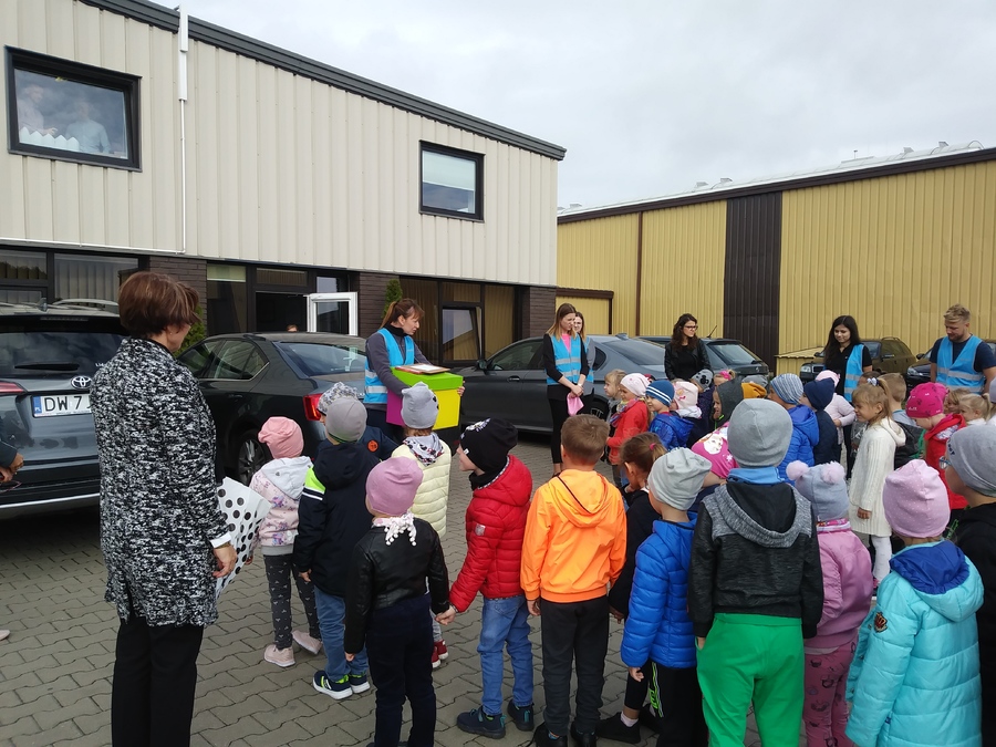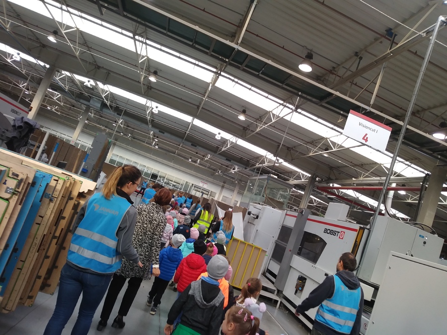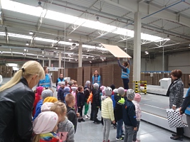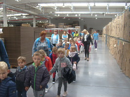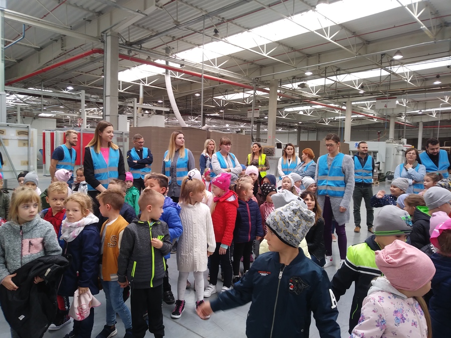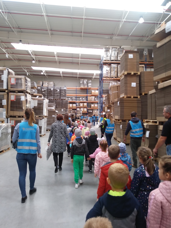 Poznając pracę zawodową dorosłych trzy najstarsze grupy z przedszkola w Trzcinicy dnia 26 września 2019r. odwiedziły zakład produkcji opakowań z tektury falistej „JANMAR CENTRUM” w Trzcinicy. Na parkingu firmy czekali pracownicy gotowi do oprowadzenia „małych gości”. Przedszkolaki zobaczyły wiele maszyn, których nigdy wcześniej nie miały okazji zobaczyć i poznały, co urządzenia te potrafią zrobić. Dużym zaskoczeniem dla wszystkich było spotkanie z „tramwajem”, który kursował po jednej z hal. Wiedza, którą zdobyły dzieci i bardzo miłe przyjęcie pozostanie w pamięci wszystkich uczestników wycieczki.