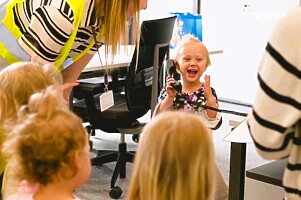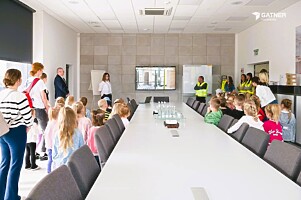 Dzieci wspólnie obejrzały film przestawiający charakter pracy firmy, poznawały kolejne stanowiska pracy spacerując po biurowcu, gdzie przedszkolaki mogły spotkać pracujących rodziców.