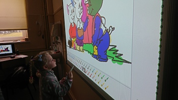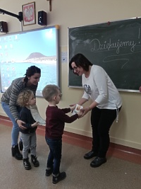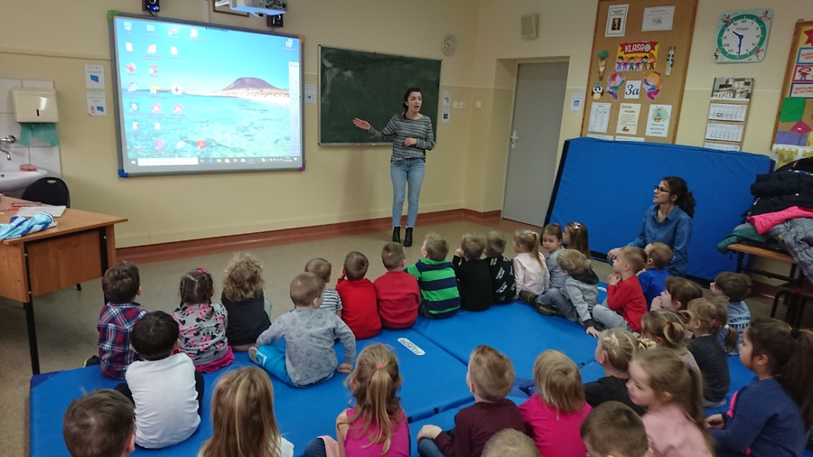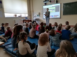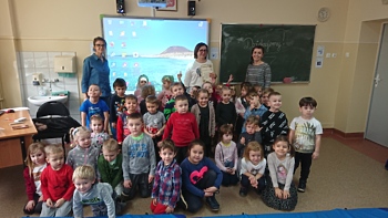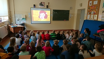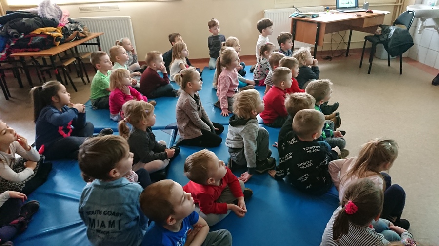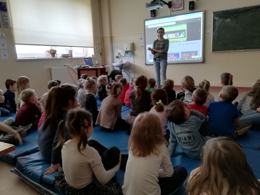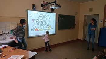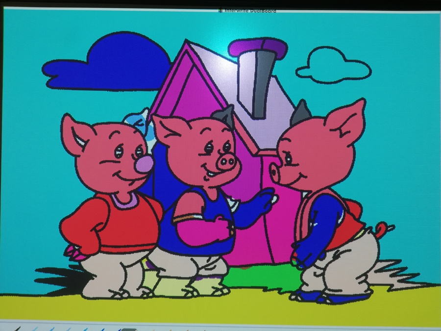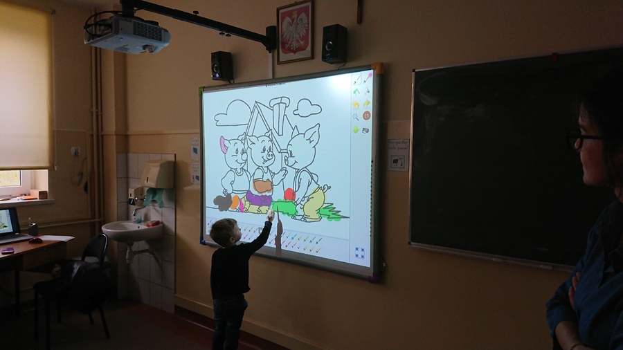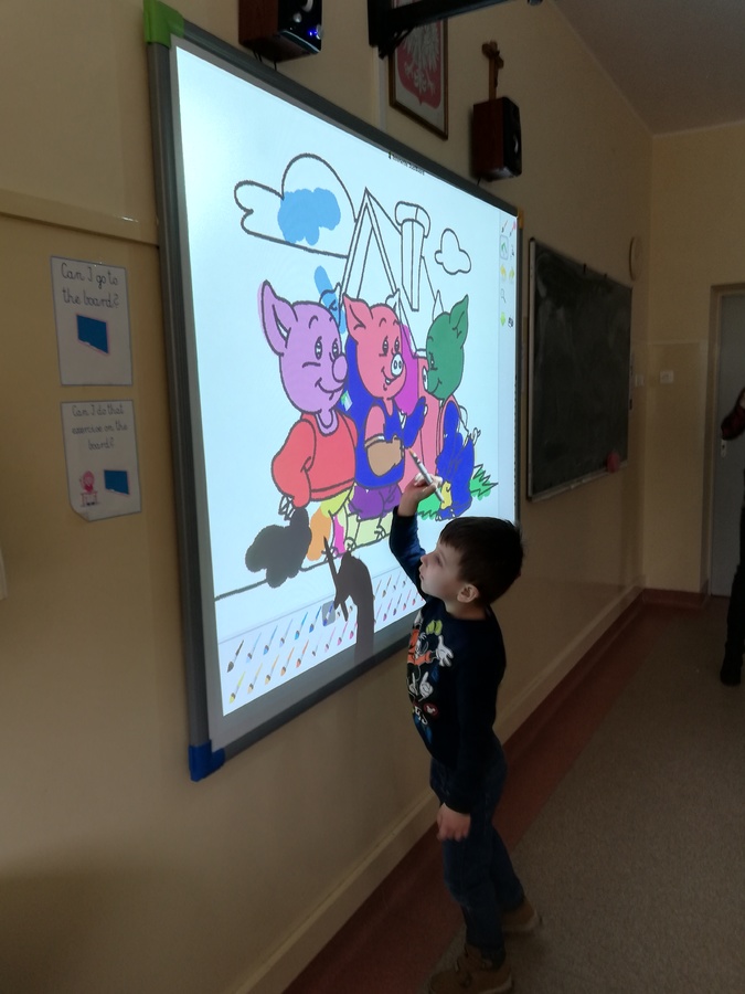 21 lutego 2020r. dzieci z najmłodszych grup przedszkolnych „Krasnoludki” i „Jeżyki” odwiedziły szkołę, aby podsumować blok tematyczny „Bajki, baśnie i legendy”. Podsumowanie odbyło się z wykorzystaniem tablicy multimedialnej, na której przedszkolaki oglądały bajkę pt. „Trzy małe świnki”. Następnie pokolorowały on-line tematyczną kolorowankę i z wielkim zapałem rozwiązywały różne ciekawe zadania – wszystko z wykorzystaniem tablicy multimedialnej.