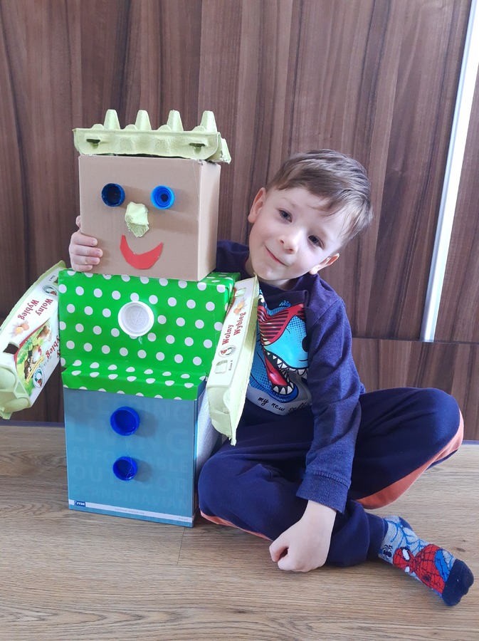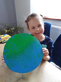 Dzieci z młodszych grup przedszkolnych „Krasnoludki” i „Jeżyki” w tym tygodniu w ramach nauki zdalnej w domu zajmowały się tematyką „DBAMY O NASZĄ PLANETĘ”. Podczas zajęć plastyczno-technicznych dzieci z pomocą rodziców wykonały m.in. EKOLUDKA, ŚMIECIOJADKA, ZIEMIĘ, a nawet same wcielały się w strażników przyrody. Nauczycielki przyznają z wielkim uznaniem, że wyobraźnia dzieci nie zna granic.
