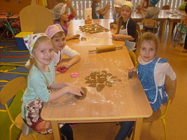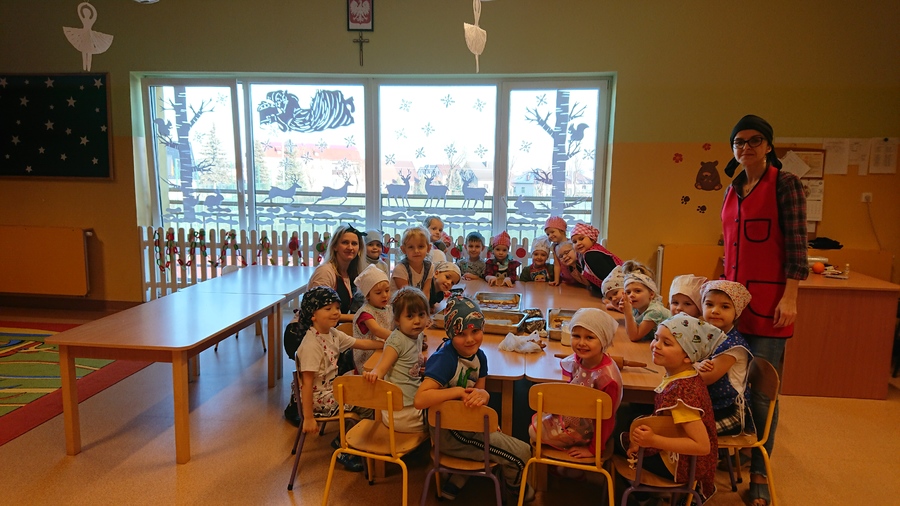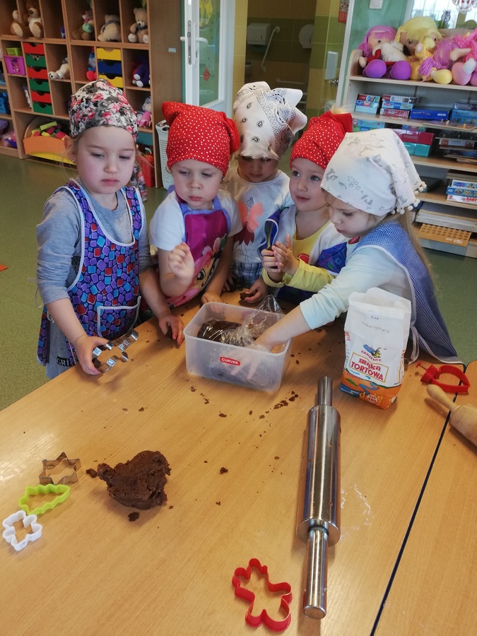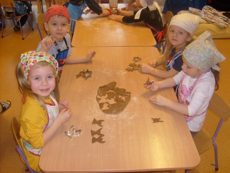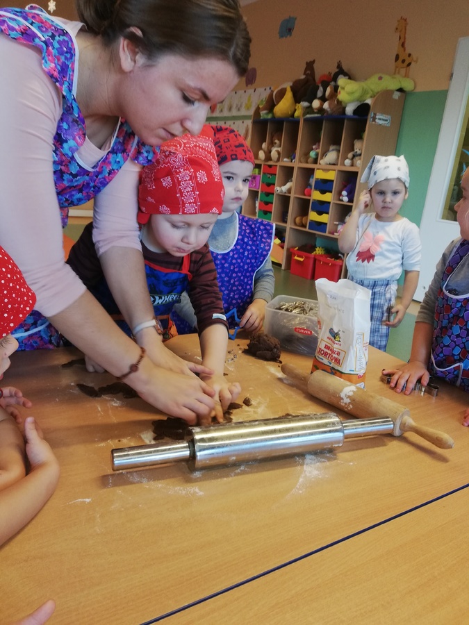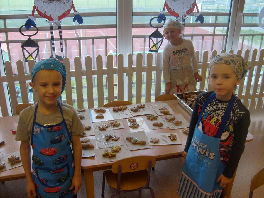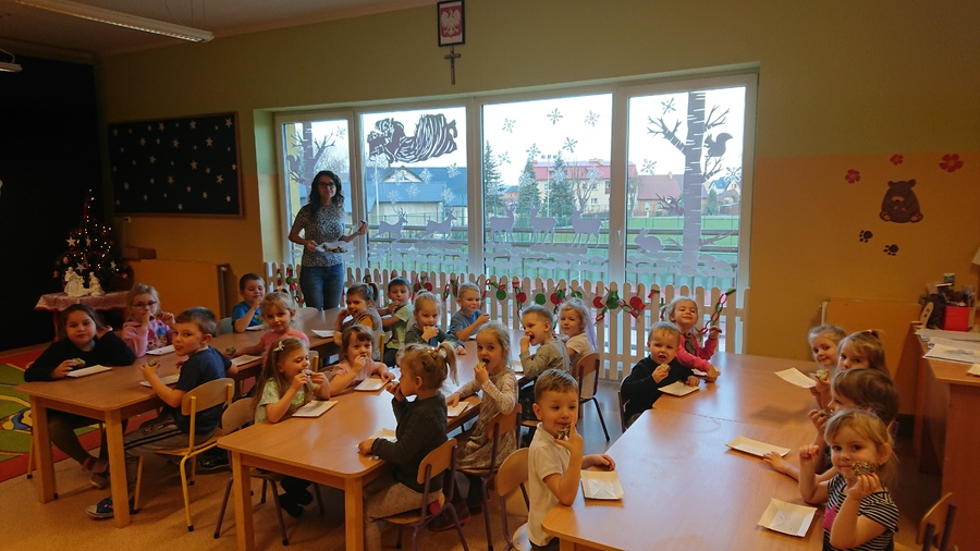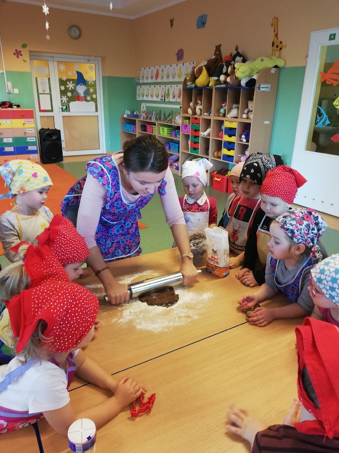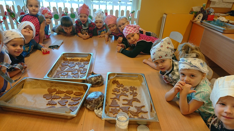 Przedszkolaki z Trzcinicy w ramach przygotowań do świąt i aby poczuć świąteczną atmosferę upiekły pierniki. 11 grudnia 2019r. dzieci z grup: „Krasnoludki” i „Jeżyki”, a 13 grudnia 2019r. dzieci z grup: „Muchomorki” i „Smoki Dinusie” pracowały przy świątecznych ciasteczkach: wałkowały, wyciskały i zanosiły do kuchni przedszkolnej, a panie kucharki pierniczki upiekły. Nauczycielki z pomocami przygotowały lukier. Dzieci przyniosły z domu kolorowe posypki, słodkie koraliki i inne cudeńka, którymi przyozdobiły pierniczki. W całym przedszkolu rozchodził się piękny zapach piernikowy. Wszyscy ze smakiem kosztowali i tych bez lukru i tych z lukrem i ozdobami.