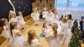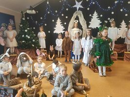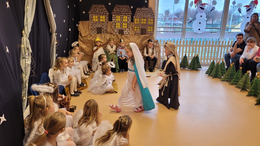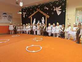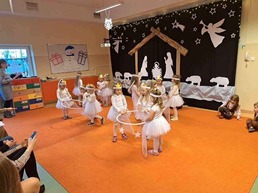 Przedświąteczny czas w przedszkolu to pora na przedstawienie rodzicom „Jasełek”. We wszystkich przedszkolnych grupach trwały przygotowania pięknych recytacji, śpiewu polskich kolęd, pastorałek i świątecznych piosenek. Dzieci również przygotowały dla rodziców upominki choinkowe, które będą upiększane wspólnie ze wszystkimi domownikami.